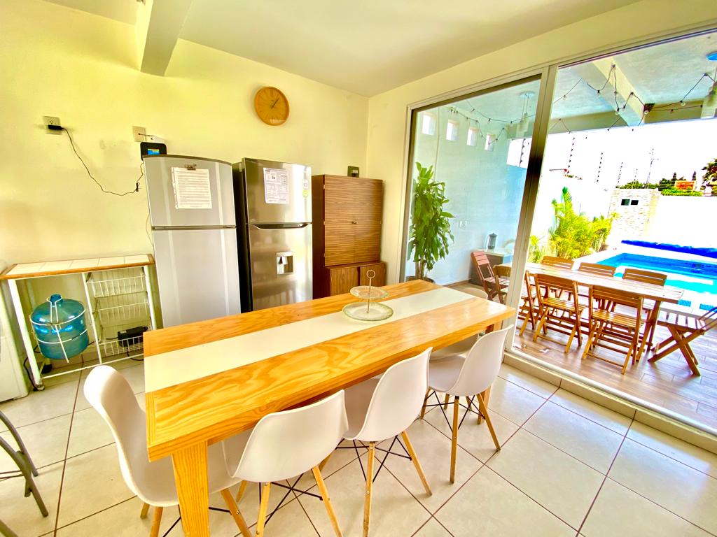 Hermosa casa en fraccionamiento privado para 12 personas con piscina de paneles solares (De Nov a Feb no climatizan y la piscina se mantiene a temperatura ambiente). Tiene amplio jardin frontal, terraza con asador, comedor exterior, bocina con BT, juegos de mesa, sombrillas, regadera y baño en el área de jardin. Wifi de alta velocidad y jardin trasero. 3 recamaras con 6 camas mat y 2 camas ind, 3 baños completos y medio baño en sala. Cocina con electrodomesticos y utensilios y 3 pantallas de TV