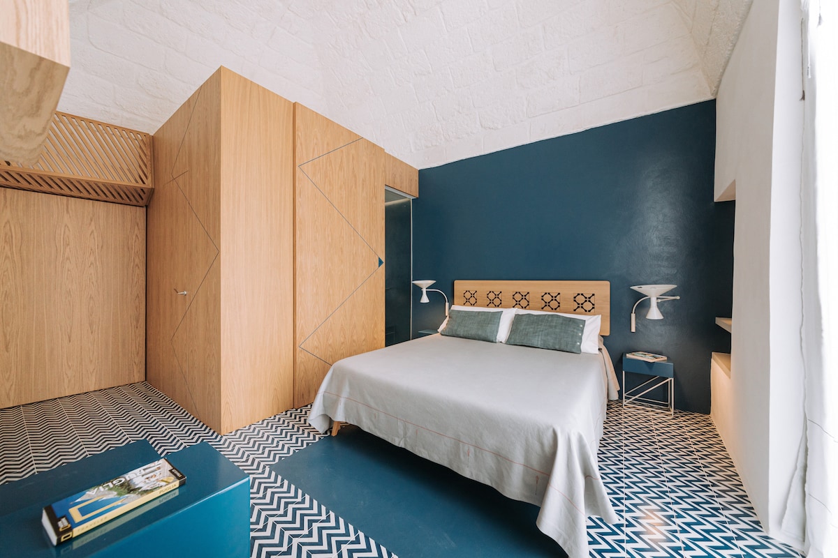 Una suite en el corazón del centro histórico con bóvedas de cañón y suelos de época. Finamente restaurada respetando su esencia, sin descuidar las comodidades para hacer que tu estancia sea única. Una espléndida terraza con bañera de hidromasaje está lista para ofrecer aperitivos y cenas en un lugar sugerente e íntimo. Las escaleras que conducen a la suite y luego a la terraza son las típicas del centro histórico. Aunque parezcan un poco empinadas, cuentan con una iluminación adecuada y pasamanos dobles.