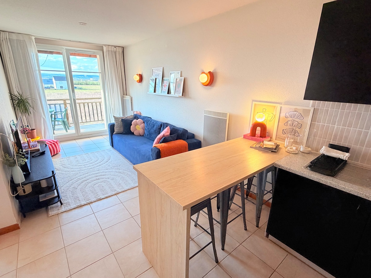 Situado en el centro de la ciudad, con hermosas vistas, moderno y luminoso🍀 Para su disfrute privado: - 1 habitación con vistas al monte, equipada con una cama BoxSpring King-Seize de 180 cm - Cocina totalmente equipada, con hornillo🫕, condimentos🌯, lavavajillas, horno, microondas, etc. - Amplio y moderno baño con 3 modos de ducha - Televisor de 65 pulgadas, internet de alta velocidad🛜 Compartido: - Hermosa terraza sombreada, área de juegos para niños - Sauna de infrarrojos en el edificio - Libros y juegos de mesa🧩📚 ¡La elección ideal para amantes, amigos o estar solo! 🌷👙🫧🩳🩱🚠🧗♀️🌞🍄⛷️☃️