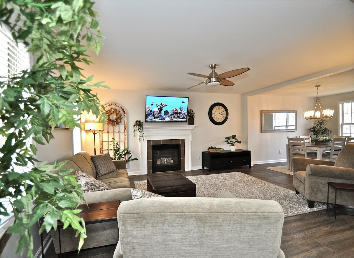 Bienvenido a Fox Hollow, un refugio elegante y cómodo en dos tranquilos acres. Conveniente tanto para Raleigh como para Durham, pero escondido en un barrio arbolado y tranquilo, experimentarás lo mejor de ambos mundos. Los huéspedes de todas las edades disfrutarán del espacio recreativo con ping pong, futbolín y mucho más. Tanto si estás planeando unas largas vacaciones como una escapada corta, el spa privado y la chimenea integrada harán que tu estancia sea memorable y la cocina totalmente equipada y las cómodas camas te harán sentir como en casa.