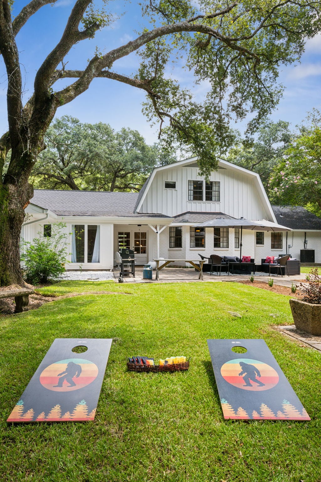 Disfruta de la pintoresca vista en Over the Moon Farm, una bulliciosa granja de caballos situada en medio de 30 acres en Covington, LA, al norte de Nueva Orleans. A poca distancia en coche de la granja se encuentra Abita Springs, una pintoresca ciudad con restaurantes y la cervecería Abita, Old Covington lleno de tiendas y restaurantes locales y varias instalaciones ecuestres cerca. Pasa el día recorriendo Nueva Orleans y relájate por la noche en uno de los dos porches con vistas a los caballos que pastan en el campo.