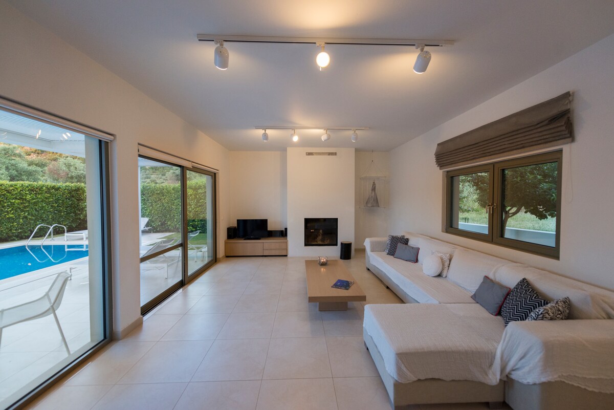 Ubicada en el tranquilo pueblo de Kournas, Alva Residence es una villa ecológica de 300 m² que ofrece privacidad y lujo para familias y grupos. Con las vistas al lago, el mar y las montañas, la villa tiene capacidad para 8 huéspedes en 4 dormitorios, con espacio para 2 más en camas adicionales. Alva Residence, con diseño elegante, funciones inteligentes y paneles solares, está a 14 minutos de playas de arena y a 20 minutos de Rétino. Incluye piscina climatizada, barbacoa y sala de juegos.
