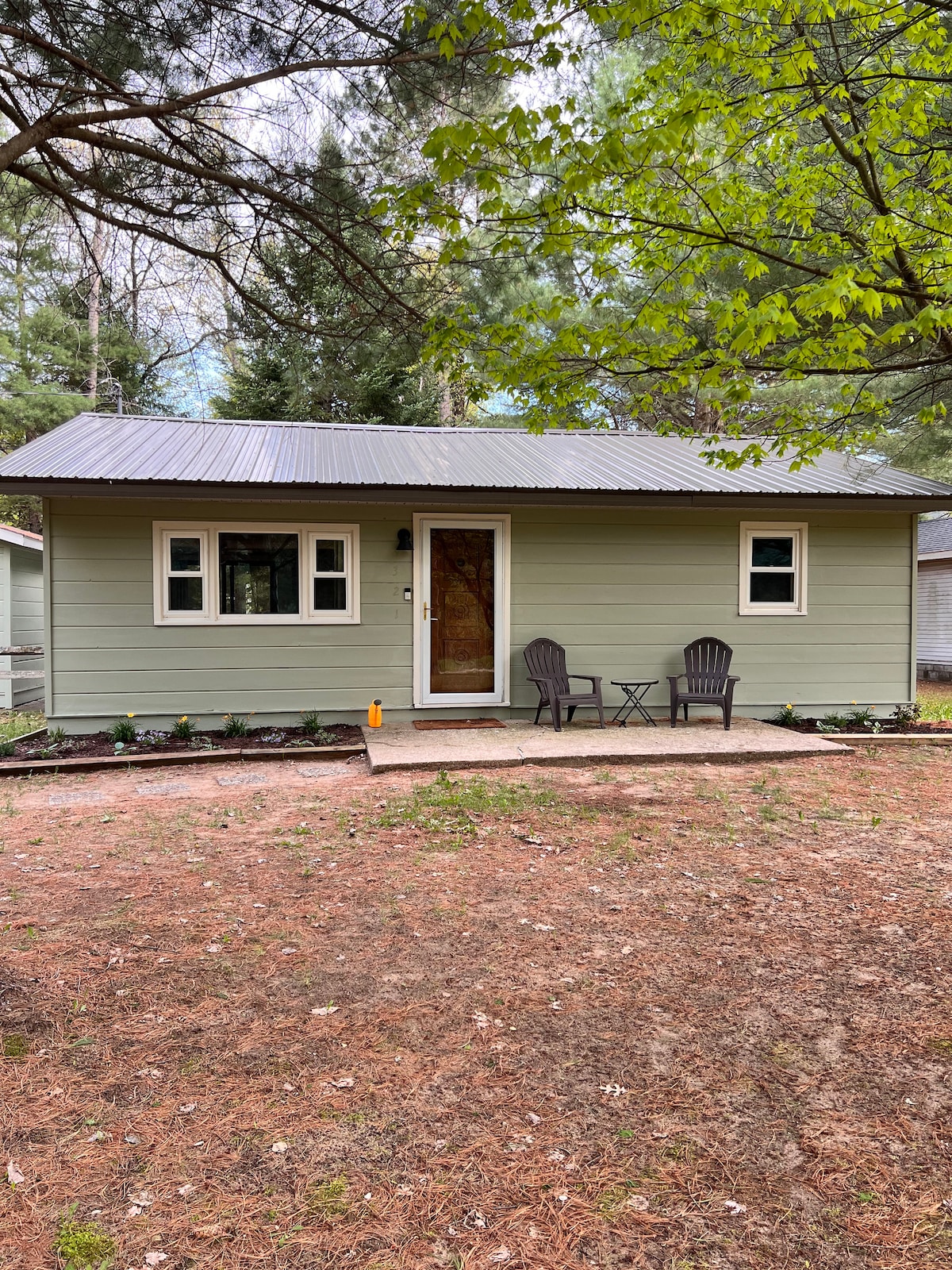 Welcome to our private Tiny Villa! It is completely stocked with dishes, cookware, gas grill, beach chairs, towels, wifi, fire pit etc… Tucked away overlooking the pond, it’s a perfect place to relax after a day of activity. An easy 20 minutes to Traverse City where you can go to the beach, shop or enjoy many excellent restaurants. Firewood available on site & have the following to RENT: Pontoon, kayaks, & paddle boards ( Contact H2O Sports Rentals to book these items or message us)