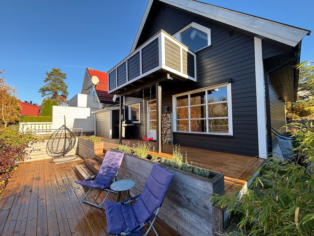 Beautifully renovated vacation home just 30 min from Oslo and 15 min from Drøbak. 5 bedrooms with (at least) 9 beds. Outdoor kitchen with fridge, BBQ and pizza oven. Jacuzzi, big trampoline, sunbeds, and multiple lounging areas. Great trails for walking or running, 7 min to a sandy beach and 2 min to a summer grocery shop. Sunny all day with lovely views. We love our home—please treat it with respect. No parties.