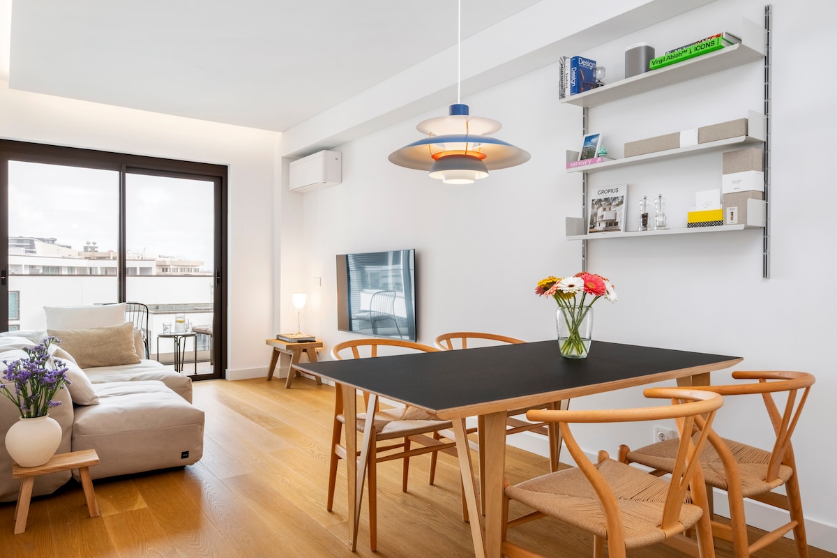 Este departamento de 103 metros cuadrados está ubicado en la segunda planta y está dividido en dos plantas. En la planta inferior, hay un dormitorio con cama tamaño queen, un baño espacioso con ducha y un balcón francés. En la planta superior, hay una gran sala de estar con sofá cama (capacidad para 2 personas), cocina totalmente equipada, lavandería, baño con ducha y un encantador balcón donde puedes comer.