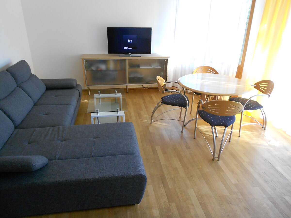 Apartamento de 2 habitaciones, cocina, baño, aseo y un gran jardín en el centro de Fürstenfeldbruck en un complejo residencial tranquilo y pequeño. Hay tiendas cerca. Tren a Múnich en unos 30 minutos. Aparcamiento gratuito. Vecinos agradables y amables. Para cocinar y lavar la ropa hay todo lo necesario. La cocina está muy bien equipada. Hay lavadora disponible.