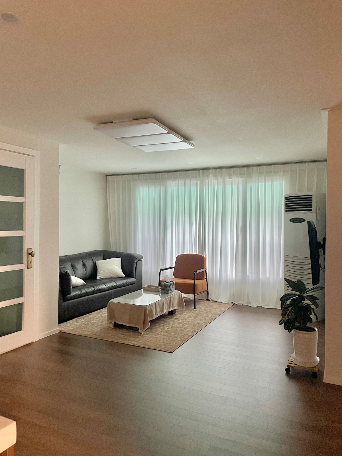 "NORMAL THINGS" are against the normality of daily. I want to provide a comfortable unfamiliarity through this place filled with ordinary things that can be easily seen in everyday life. During the day, feel the cool breeze and warm sunlight coming through the big window. in the evening, relax listening to your favorite music. Check in: 3 pm Check out: 11 am Recommend a reservation for 2 people. (Double bed room setting, 2 beds not available) 3 people: Bedding set on sofa bed in small room