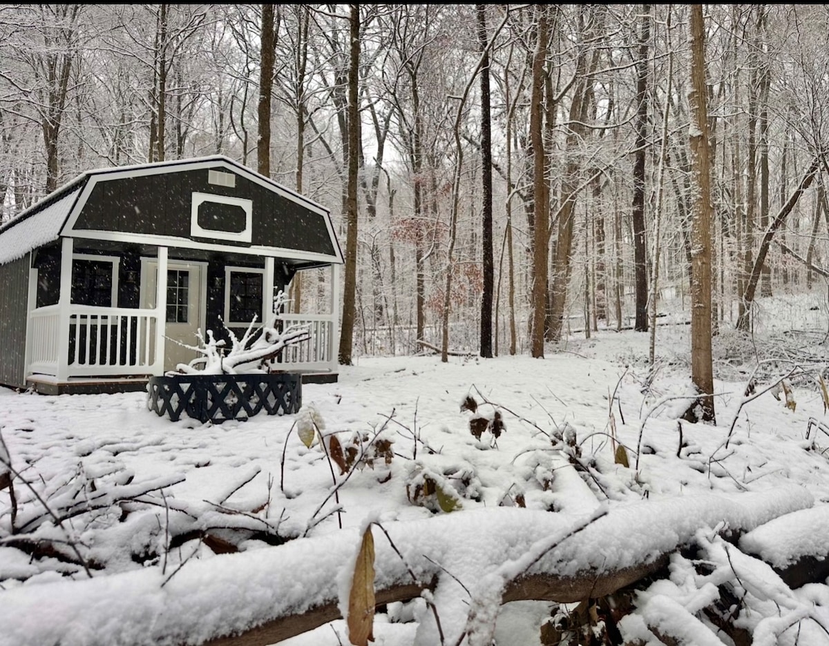 Experimenta la vida en una casa pequeña en una hermosa ubicación arbolada. El espacio incluye una cómoda cama tamaño queen, escritorio plegable, pequeña cocina americana y una sala de estar para relajarse y disfrutar de la cena. También tiene una hermosa zona de estar al aire libre con zona de parrilla y observación de aves en el estanque. Cocina/zona de cocina mínima, pero con ducha de tamaño completo e inodoro seco (sin agua, pero sin olores).