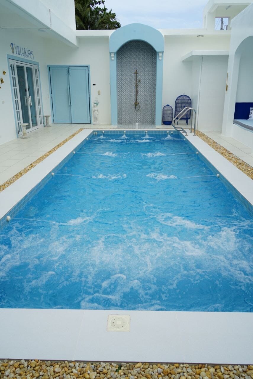 This is a combined Santorini and Mykonos inspired Villa. Feel the luxury living in this 33meter long Villa with a rooftop tennis court, a private pool with Jacuzzi. Indeed an unforgettable place to stay! We offer a full package of wellness services including Pilates. You will have your personal housemaids and butlers during your stay. We also offer a package tour like hiking,farm visit food trips, Island visit and more! This is not just a vacation it is extraordinary opportunity. See you!!!
