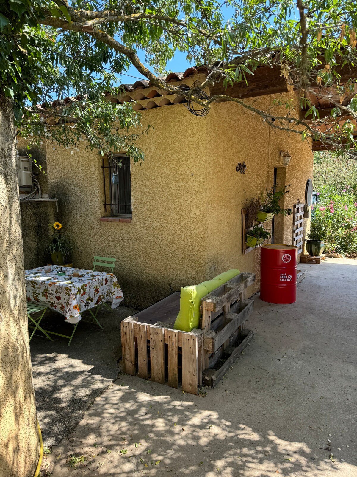 Entre tomillo y romero, cerca de un pequeño pueblo provenzal: - Estudio (25 m2) totalmente independiente con una cama doble (160x200), armarios, cuna, trona, wifi, aire acondicionado. - Cocina equipada con vitrocerámica, nevera, horno + microondas, cubiertos, utensilios de cocina, cafetera Nespresso (cápsulas pequeñas). - Ducha, aseo, - Yurta cerca (25 m) con 3 camas individuales, electricidad, aire acondicionado y wifi. - Piscina (15 m x 5 m. Prof. de 1,10 m a 3,30 m) ¡Para compartir con... yo!