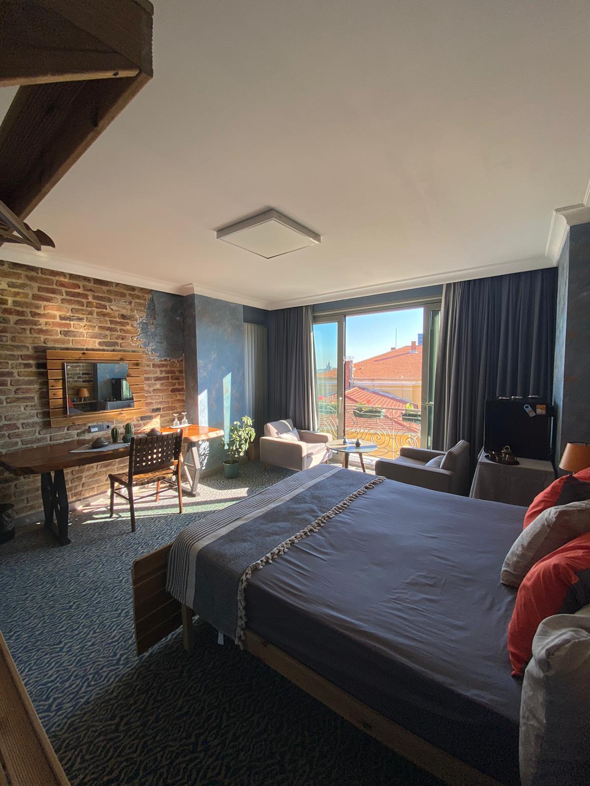 Esta elegante, bien decorada (todos los muebles de madera están hechos a mano), impecablemente limpia, grande y única suite tiene un baño de alta calidad y ascensor en la excelente ubicación en el distrito de Beyoğlu/Taksim. Además, desde su balcón privado se puede ver la magnífica vista panorámica del Bósforo (hasta las Islas Príncipe y el lado asiático) y la península histórica (palacio de Topkapi, Santa Sofía, mezquita de Süleymaniye, torre de Gálata, junto con otros monumentos famososos).