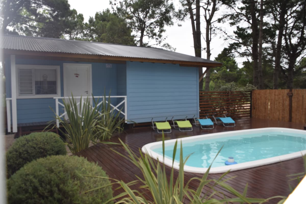 Confort en un entorno tranquilo para 4 PAX (consultá por pasajeros extra) Nuestras cabañas se encuentran ubicadas en el medio del bosque con un parque propio de 900m2. Acceso a solo 7 cuadras del centro comercial y su increíble polo gastronómico, y de playa "Las Acacias" una enorme extensión de arena para perderse entre los médanos. Nuestras cabañas son Pet Friendly (hasta 10kg) Consultá el costo extra. Relajación y diversión, con servicios y comodidad para toda la familia. Te esperamos!