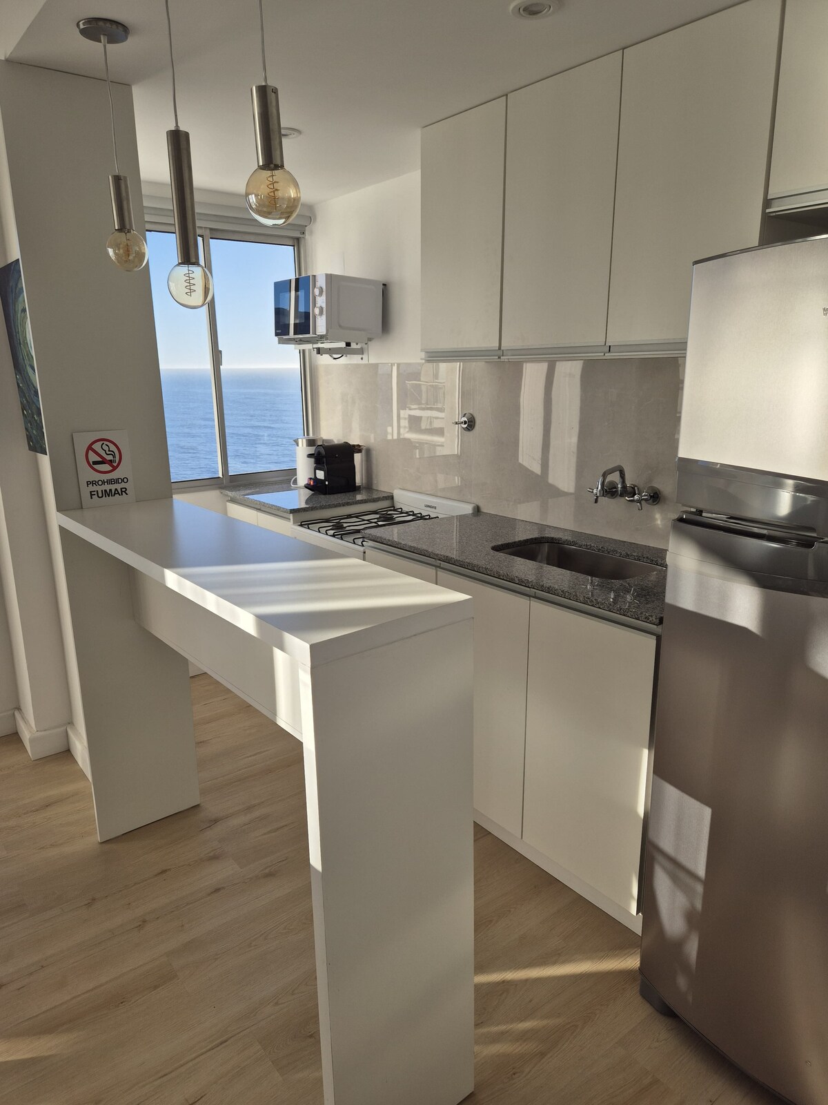 Tenemos el departamento ideal! A 150 mt del mar, con vistas panorámicas impresionantes. Estarás a solo 2 cuadras del centro de la ciudad, el casino, cafes y restaurantes. El departamento es nuevo y cuenta con 1 baño amplio, un dormitorio con cama doble, un living con sofa cama doble y una cocina bien equipada y cochera privada de gran tamaño sin cargo. La diversión siempre esta garantizada, cuenta con Wifi, Disney +, Star+ y HBO ¡Contáctanos para más detalles y reserva hoy mismo!