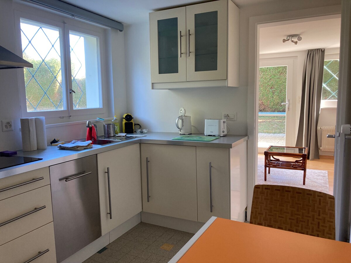 Apartamento tranquilo, totalmente independiente, en casa privada. ¡Acceso al jardín, con una terraza privada solo para usted! A 300 metros del lago. Coppet es un pueblo muy bonito, con todos los comercios, a 9 minutos de Ginebra y a 5 minutos de Nyon. Si le gustan los paseos, le llevaré a ver las gamuzas en el Jura