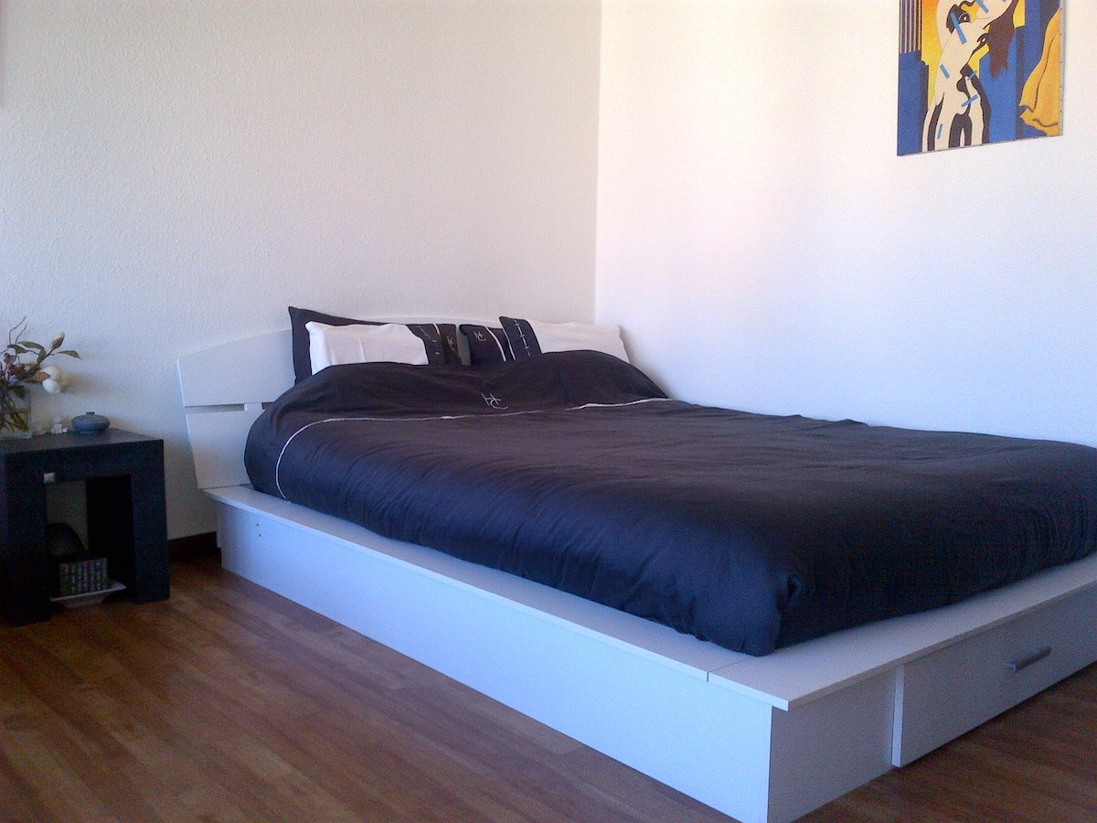 Loft grande, soleado y muy céntrico con cocina equipada, balcón y bonitas vistas. A 10 minutos a pie de las Naciones Unidas (5 en tranvía). A 1 minuto a pie de la estación principal de tren Cornavin. A 5 minutos a pie del lago. A 10 minutos a pie del casco antiguo. Cama grande. ¡Wifi de muy alta velocidad! Apple TV 4K Televisor inteligente de pantalla grande de 55 pulgadas con más de 250 canales de televisión en todo el mundo. Netflix Totalmente equipado. Ideal para teletrabajo y trabajo desde casa.