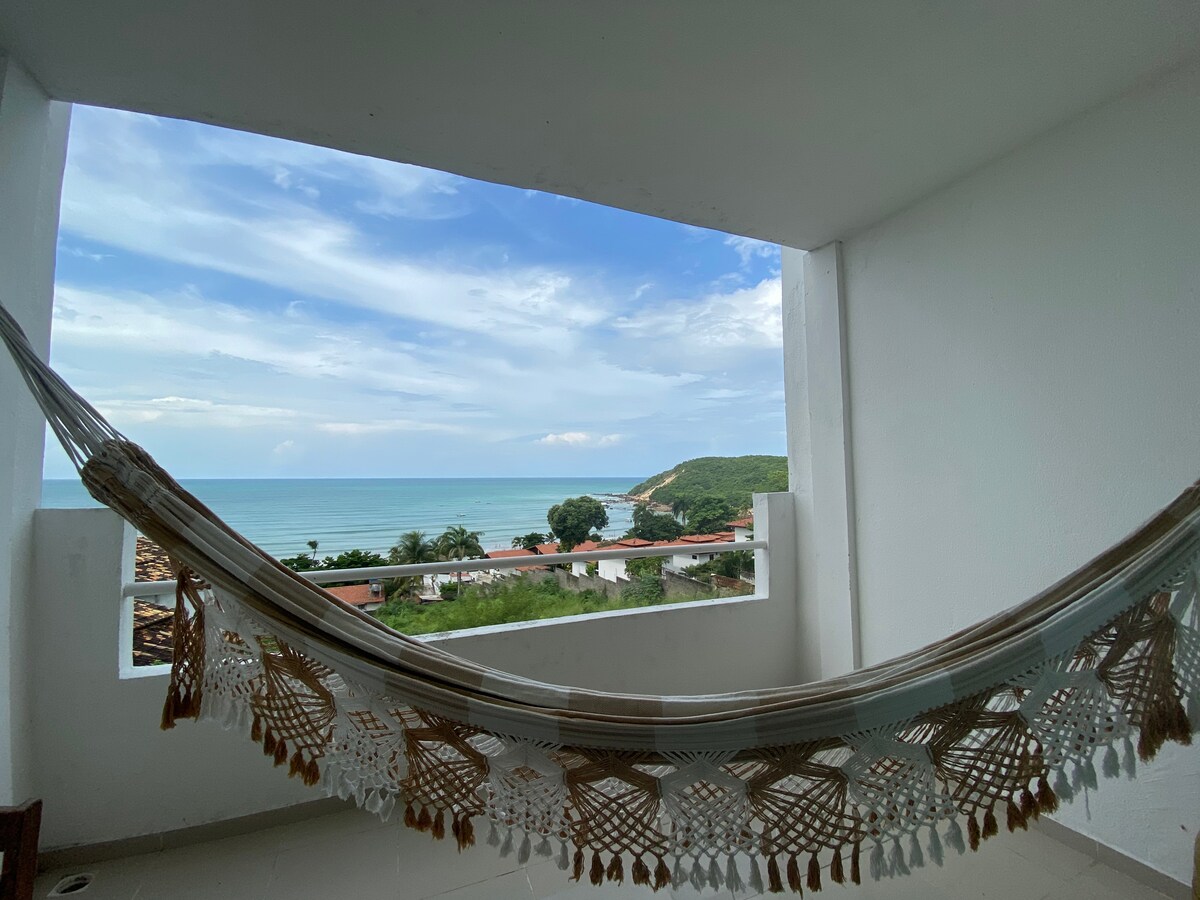 Apartamento único con vista completa al mar, propiedad con acceso a la playa y además de una gran piscina para adultos y niños con terraza de madera con vista a Morro do Careca, aire acondicionado solo en el dormitorio, refrigerador, horno, estufa, licuadora, plancha, TV por cable, Wi-Fi, estacionamiento rotativo, limpieza diaria, un lugar realmente genial para que una pareja pase su fin de semana o sus vacaciones.