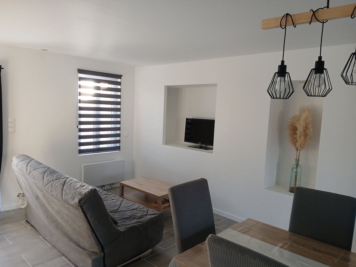 Le daremos la bienvenida con total sencillez, al lado de nuestra casa, en un estudio moderno, apartado de la calle, para una estancia tranquila. Encontrará una cocina equipada, una cómoda cama de 160x200, una ducha a ras de suelo y un inodoro separado. Podrá pasear por el jardín de unos 300 m2, que he convertido en un minijardín Bosque comestible. Y para mayor placer, ¡puedo ofrecerle una cesta de desayuno para disfrutar aún más del momento!