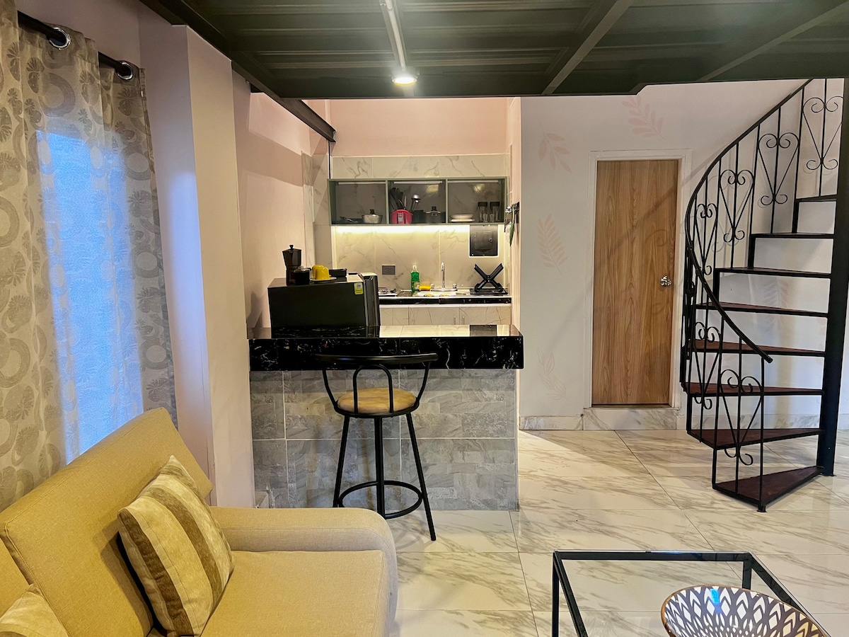 Apartamento RUSTICO, ARTISTICO y BOHEMIO, en un tercero y cuarto piso, en el tradicional y pintoresco barrio de Getsemaní, centro Histórico de Cartagena, cerca de la bahía, la Plaza de la Trinidad, y la Torre del Reloj. En el tercer nivel está la habitación, cocina, baño y zona de estar con patio privado, y en la terraza un espacio con una visual de 360 grados. Para acceder al apartamento debemos subir dos escaleras una de ellas tipo Caracol, Está es una edificación antigua.