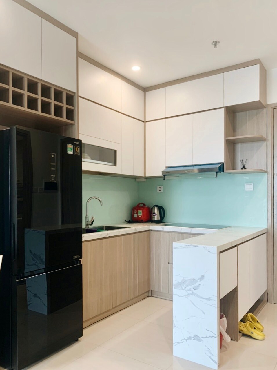 •1 dormitorio separado con una cama grande y suave. • Área “+” con cama supletoria, adecuada para familias pequeñas o grupos de amigos de 3–4 personas. • Sala de estar abierta y totalmente amueblada: TV, sofá, aire acondicionado, wifi de alta velocidad. • Cocina moderna: utensilios de cocina completos. • Inodoro limpio, con lavadora y calentador de agua. • Seguridad y recepción las 24 horas, los 7 días de la semana, seguridad absoluta. • Gimnasio de lujo, piscina interna. •Cerca del mar del lago salado, el lago central, el centro comercial Vincom Mega, la escuela, el hospital nacional