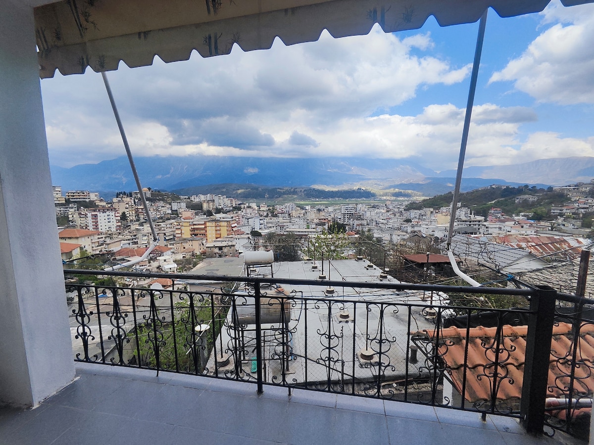 Apartamento de lujo de dos dormitorios y un baño recientemente reformado y amueblado con vistas al balcón de la ciudad de Gjirokaster, las montañas circundantes, el casco antiguo de Gjirokaster y el castillo de Gjirokaster. Tu familia y amigos se sentirán como en casa en nuestro prístino apartamento con fácil acceso a pie a todo lo que la ciudad de Gjirokaster tiene para ofrecer: tiendas y restaurantes (dos minutos), el Old Bazaar (15 minutos cuesta arriba) y el castillo de Gjirokaster (25 minutos).
