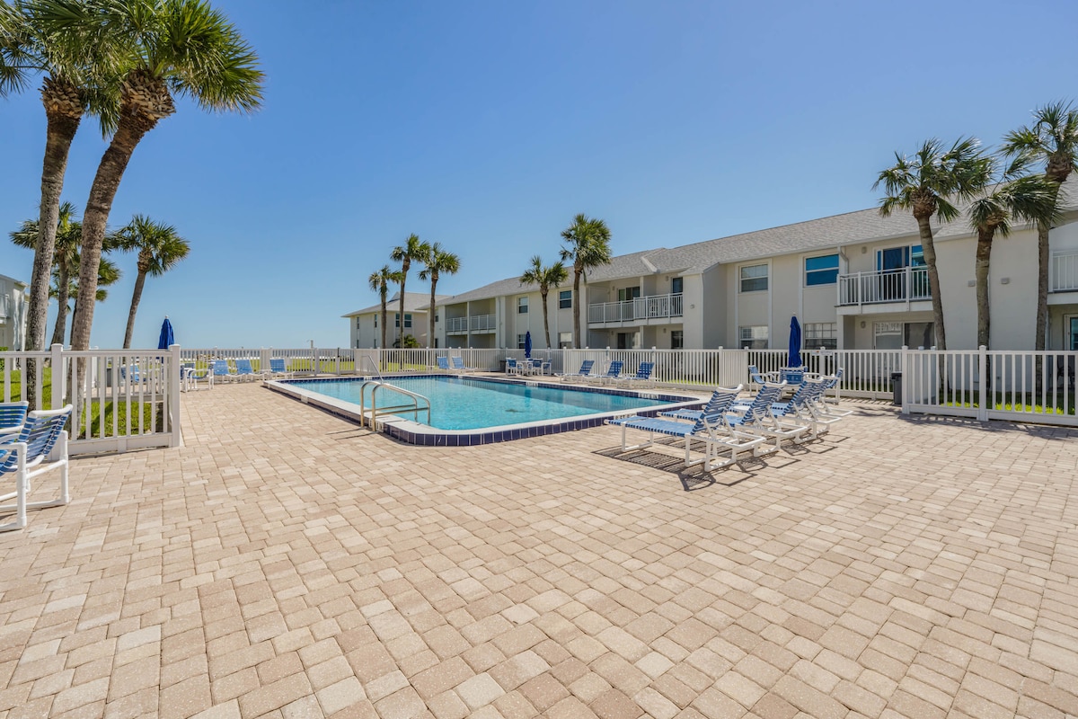 ¡Sumérgete en el mar o en la piscina en minutos! Este apartamento bellamente renovado, a pasos de la playa de New Smyrna, es perfecto para estancias de días o semanas. En un complejo turístico, ofrece todas las comodidades modernas para una estancia relajante. Incluimos toallas, sillas y otros artículos de playa. El balcón cerrado es ideal para relajarse y cenar al aire libre sin perder la privacidad. ¡Explora este oasis y regresa con las pilas completamente recargadas!