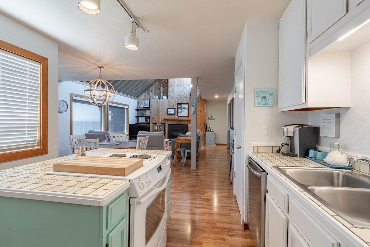 Escápate a un paraíso costero tranquilo y lleno de luz en el distrito de Taft de Lincoln City. Este nuevo apartamento ofrece vistas a la bahía, techos altos y un diseño abierto perfecto para relajarse o conectarse. Acurrúcate junto a la chimenea después de un paseo por la playa, toma un café mientras la marea sube o pasea por las cafeterías, boutiques y el océano a pocos minutos de distancia. Con dos dormitorios más una habitación adicional para siete personas, hay mucho espacio para relajarse juntos.