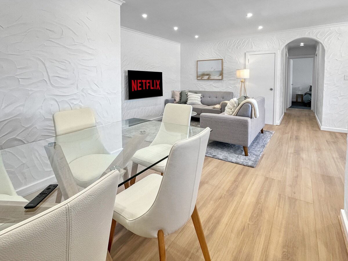 Te sentirás relajado y como en casa tan pronto como llegues a este apartamento elegante, cómodo y perfectamente ubicado. Ya sea que quieras comer cerca o trabajar desde casa y sin servicio de autoservicio, aquí encontrarás todo lo que necesitas. Estarás a poca distancia a pie de las tiendas, bares y restaurantes de Glenelg Beach y Jetty Road (15 minutos), mientras que también estarás a poca distancia en tranvía o autobús de la ciudad de Adelaida. Una cama tamaño KING y una cama TAMAÑO QUEEN se adapta a una pareja, una familia pequeña o un grupo de hasta cuatro amigos.