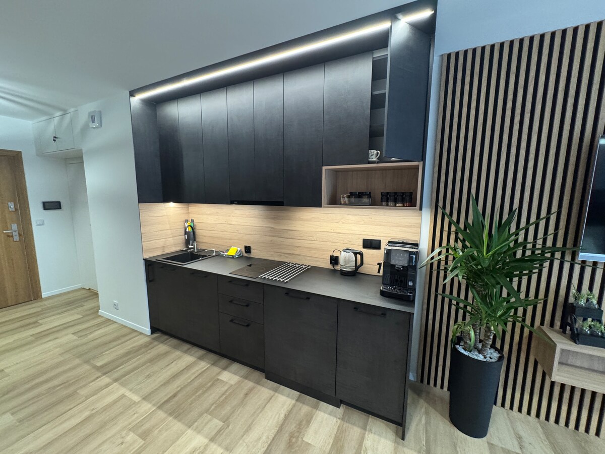 Apartamento nuevo y con acabados elegantes en una casa de vecindad de 1929 en el casco antiguo. Totalmente equipado, perfecto para estancias más cortas y largas para grupos de hasta 4 personas. Se admiten mascotas Estacionamiento gratuito. Una base ideal para explorar. Dormitorio con cama de 160x200 con un colchón muy cómodo que garantizará un sueño cómodo. El sofá cama puede alojar a 2 personas más. Máquina Nespresso con una selección de cápsulas originales, ¡para una mañana perfecta! Además, una cocina totalmente equipada y baño. Inodoro y ducha separados.