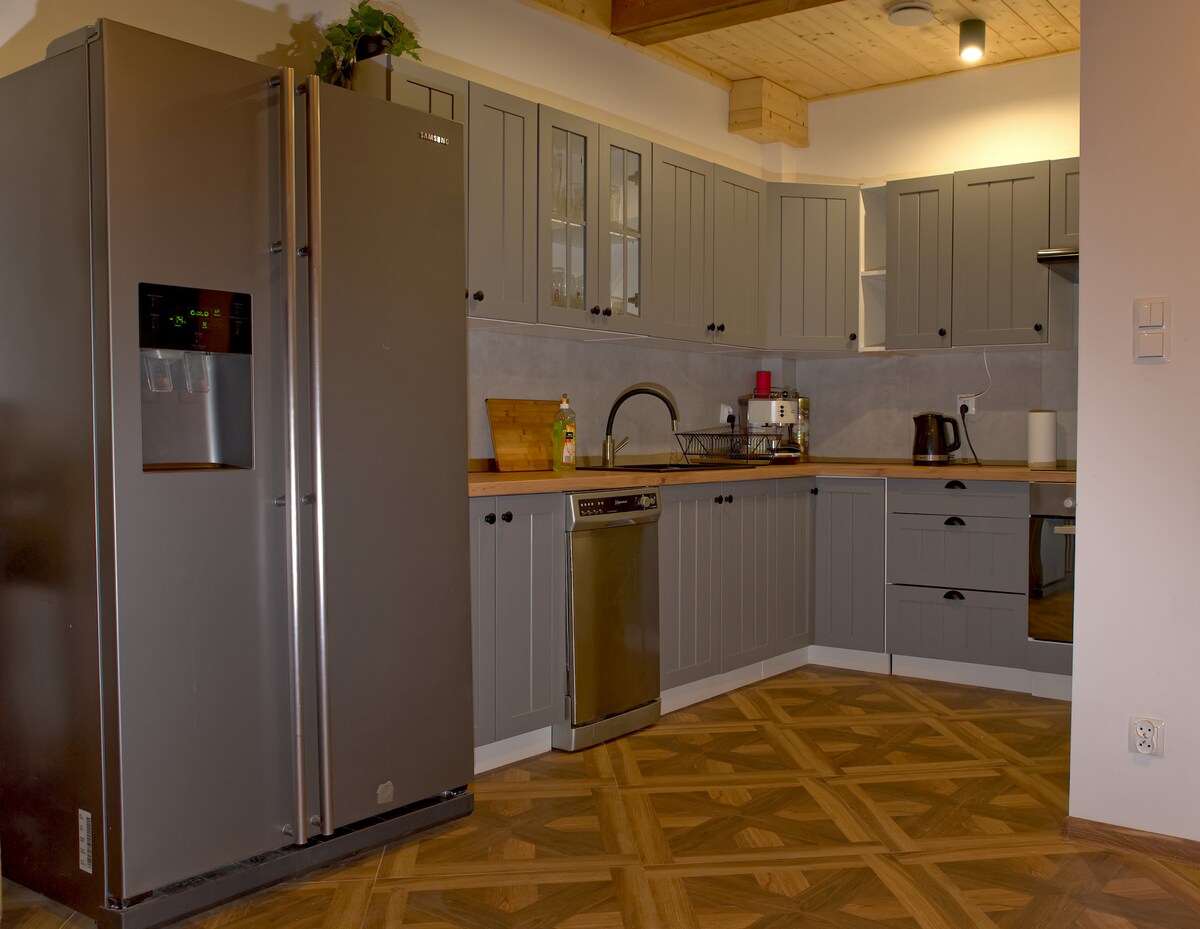 Es hora de relajarse en la región de Lublin 🌾🌾🌾 La casa tiene una cocina totalmente equipada, una acogedora sala de estar con chimenea y un baño. En el ático hay un dormitorio con dos camas dobles y un espacio de trabajo. Terraza con vistas al bosque joven, junto al jacuzzi para 6 personas (cargo adicional) y un poco más lejos un lugar para una hoguera con una gran rejilla. Bajo petición, productos locales de agricultores (verduras, miel, pan, huevos) A 1 km hay rutas en bicicleta, a unos 10 km está el lago turístico Firlej con muchas atracciones. Te invitamos
