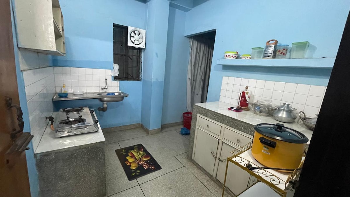 Esta acogedora casa en el cuarto piso combina comodidad y conveniencia con un dormitorio luminoso, un armario de pared, una sala de estar con TV, una sala de oración, una estación de trabajo y un comedor. La cocina incluye nevera, horno y filtro de agua HI-TECH para facilitar la vida. Elementos esenciales como el geiser, el wifi y el aire acondicionado tanto en el dormitorio como en la sala de estar garantizan la comodidad. Ubicado junto al outlet Gulshan Aarong y a poca distancia a pie de tiendas de alimentos, es perfecto para leer tranquilamente, trabajar desde casa o simplemente relajarse para un máximo de 2 personas.