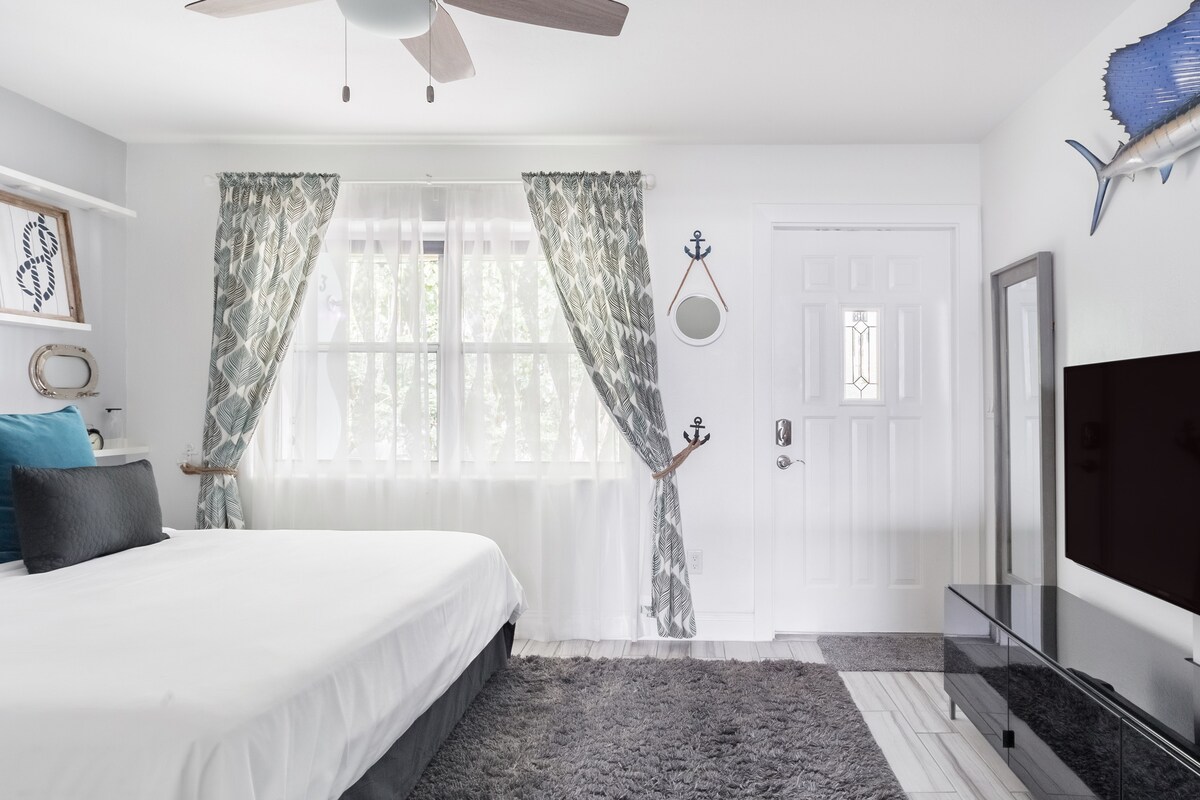 Romántico, limpio, privado y tranquilo: perfecto para relajarse después de un día de playa o de trabajo. Decoración moderna, electrodomésticos y muebles de alta gama, televisor inteligente Samsung de 85 pulgadas con barra de sonido Bose, porche trasero privado con parrilla. A solo 3 millas de la playa y a 1 milla de la carretera principal i95 y a 1 milla de Wilton Manors. A poca distancia a pie de tiendas de comestibles, bares y restaurantes.
