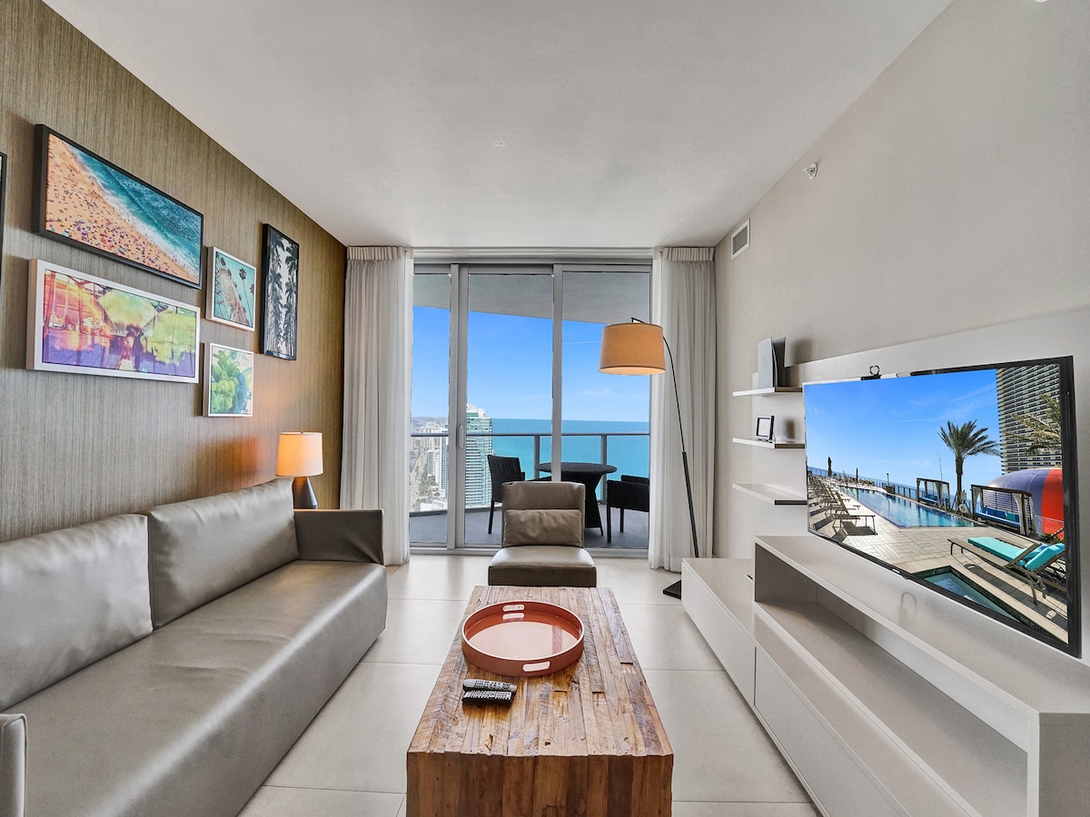 Abraza el encanto costero de Miami desde tu propio santuario frente al mar. Nuestro acogedor refugio te invita con vistas panorámicas al océano y una ambientación acogedora y elegante. Pasea por la playa, relájate junto a la piscina y saborea cócteles y mariscos frescos en tu balcón privado. Convenientemente ubicado cerca del Aventura Mall, Miami Beach y Fort Lauderdale, con supermercados, cafeterías y restaurantes a solo unos pasos. ¡Tu escapada perfecta en Miami te espera!