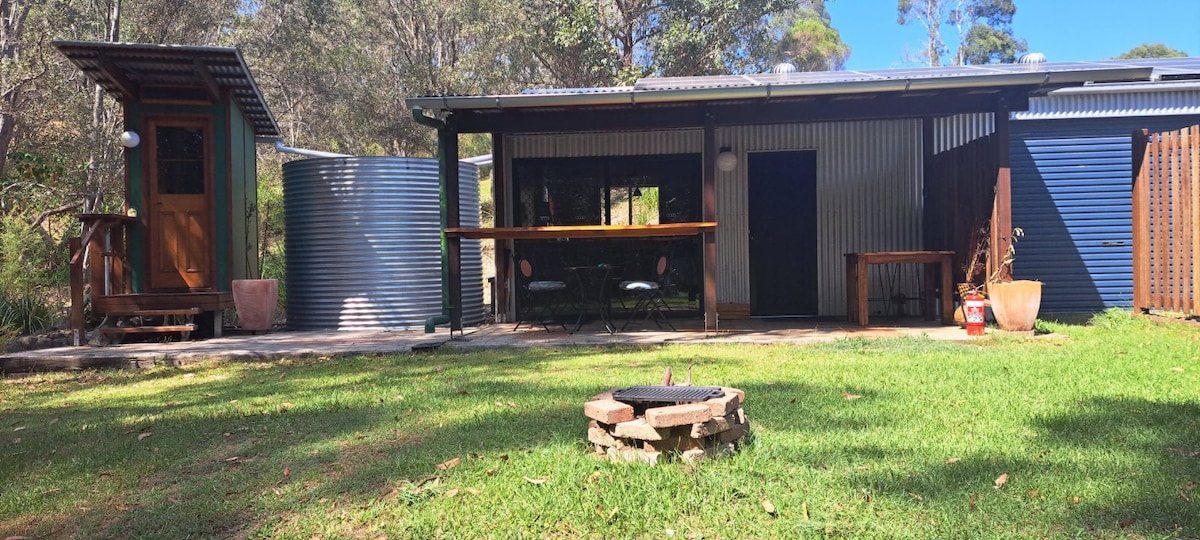 Cabaña de dos dormitorios que tiene encanto rural con troncos expuestos internamente, todas las comodidades modernas atendidas. Propiedad situada en 411 acres. Se admiten paseos por el monte, ciclismo de montaña, paseos a caballo (trae tu propio caballo) y perros. Incluso tu periquito mascota puede venir. La fogata y la barbacoa se suman a la experiencia al aire libre que solo se encuentra en un mundo perdido. Estrellas brillantes por la noche. Pozos de agua para nadar (cuando llueve). Ven y disfruta de la paz y la tranquilidad de una zona libre de móviles. Desintoxícate.