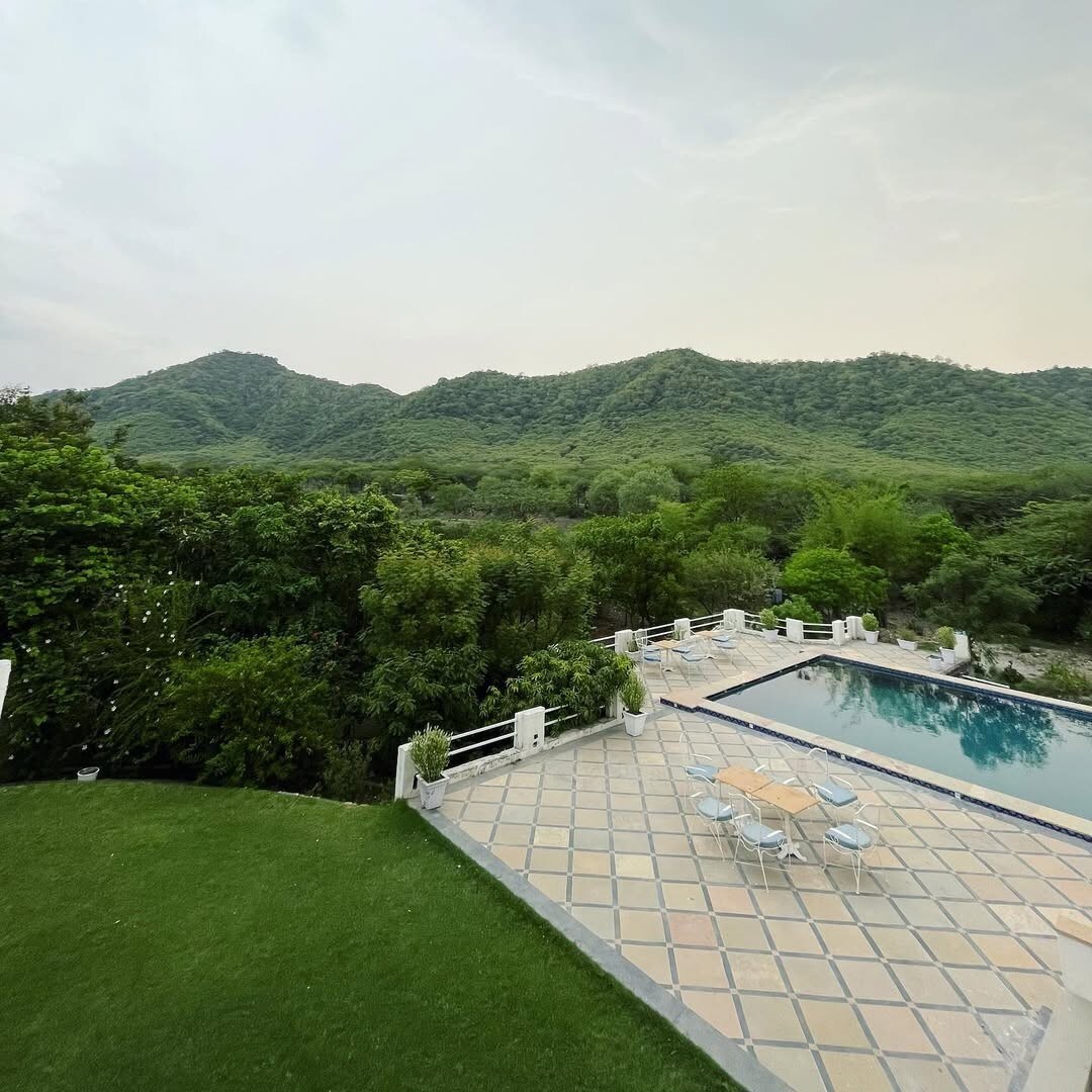 "Hidden Haven, in Udaipur, is a luxurious escape blending modern comforts with nature's serenity. The private pool beckons relaxation amid lush greenery. The farmhouse, seamlessly integrated with its surroundings, offers panoramic mountain views. Monsoon evenings or winter nights with Cozy fireplaces and starlit evenings make every moment memorable. Discover a tranquil sanctuary, where luxury and nature converge for an unforgettable retreat."