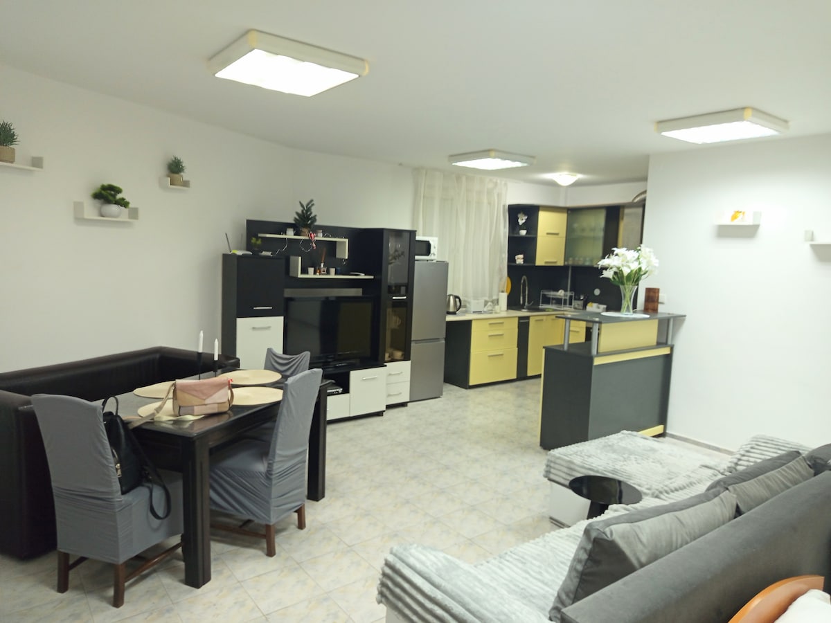 Disfruta de Gabrovo en nuestro elegante apartamento de dos habitaciones, situado en el corazón del centro de la ciudad y cerca de todo lo que necesitas y quieres visitar. Las grandes ventanas ofrecen una vista única del río Yantra y la montaña. Póngase cómodo y disfrute de una taza de café o té recién hecho. Los museos y el mejor restaurante están a solo unos pasos del apartamento. Cerca de varios parques y parques infantiles más pequeños, la calle peatonal central y el centro de la ciudad.