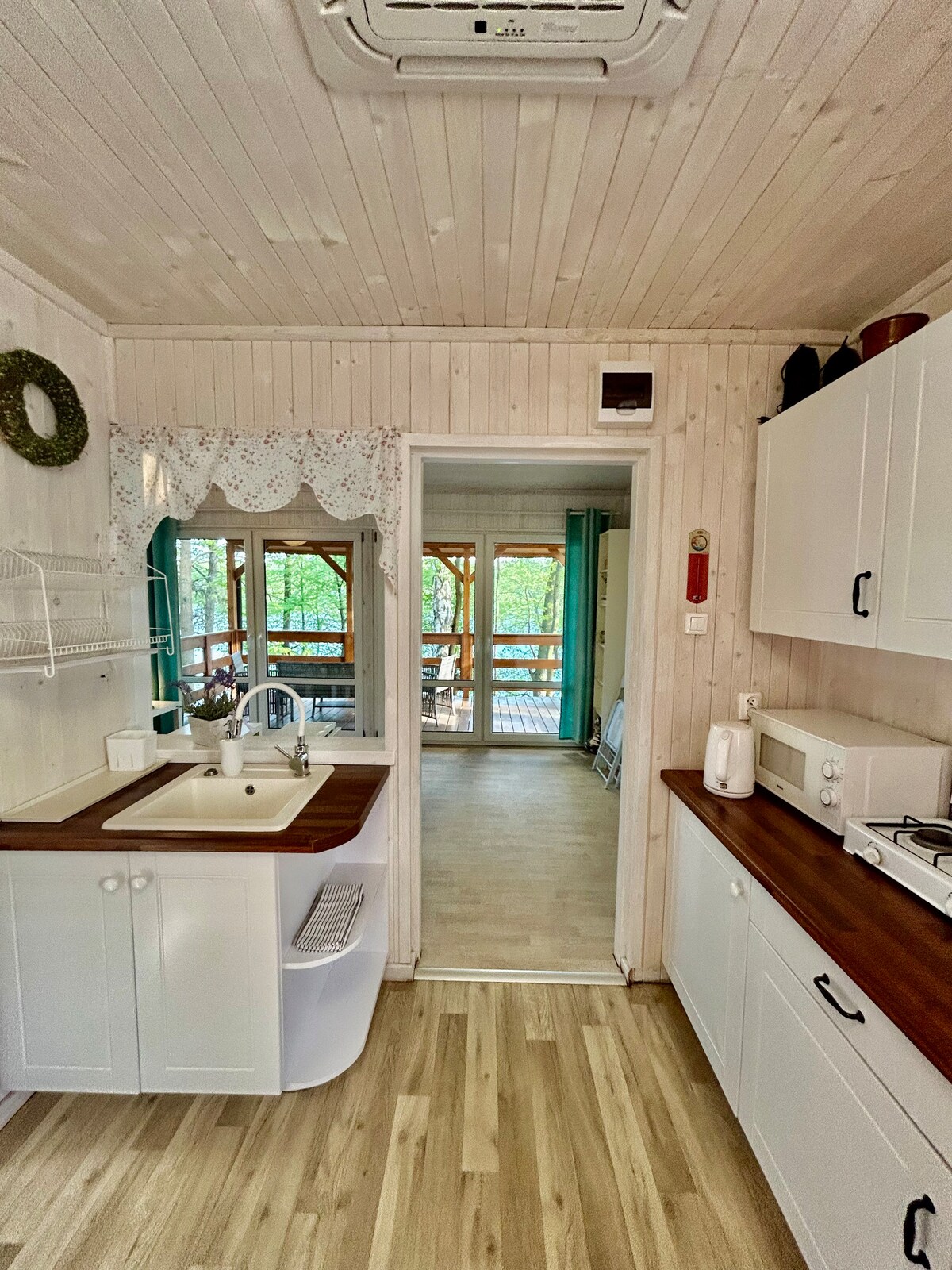 La cabaña cuenta con 2 dormitorios, un baño y un saló con una cocina americana. La cabaña está equipada con un juego de platos necesarios. Está plantado en una pintoresca parcela con un estanque. Los huéspedes disponen de una barbacoa y una fogata. Hay 3 lagos en un radio de 3 km de la cabaña, de los cuales el más cercano está a solo 1,5 km. La tienda está a 650m y el bar más cercano está a 1km. También hay una iglesia y una oficina de correos cerca.
