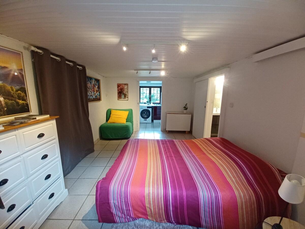 Encantador estudio de 15 m2 contiguo a nuestra casa cuya entrada es privada, renovado y decorado al estilo industrial que ofrece un fácil acceso a todos los sitios (a 20 minutos de Disneyland París, a 2 km de la Base de Vaires - JO) y a los servicios. Paradas de autobús a 150 metros, estación de tren Vaires - Torcy a 10 minutos a pie (París Gare de l'Est 20 minutos). Comercios a 5 minutos a pie: Carrefour Express abierto los 7 días de la semana de 8:00 a 20:00, panadería, farmacia, peluquería, estanco, supermercado, pizzería, hospital, parque y bosque...