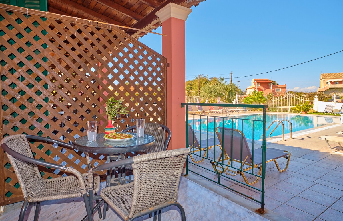 Louvros Apartments are located 1,2km from Sidari center and 32km from Corfu Town. Our property consists of 4 maisonettes(60sq.m) and 4 open plan spacious studios (29sq.m) with a communal outdoor swimming pool of 120sq.m. The maisonettes can accommodate up to 4 guests and the studios up to 3, all on single beds.