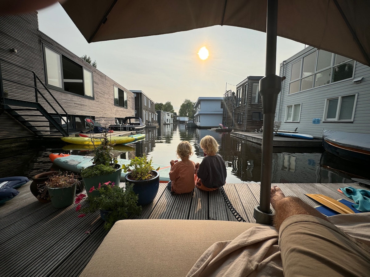 Esta casa flotante de 100 m2, construida por el propietario en el barrio flotante más sostenible de Europa, «Schoonschip», ofrece una sensación de vacaciones instantáneas. A solo 5 minutos en bicicleta al norte de la estación central, en la zona más moderna y emocionante de Ámsterdam, pero en sí misma un oasis tranquilo y apacible en la ciudad. Con acceso directo a natación, piragüismo y hermosos paseos al aire libre; y una sauna y cine en casa en el interior. No dudes en ponerte en contacto con nosotros si las fechas o la duración no se ajustan a tus planes, es posible que podamos llegar a un acuerdo.