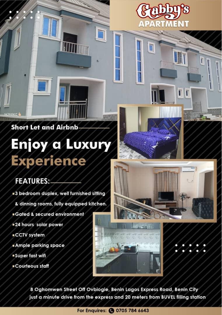 Affordable Luxury 4-Bedroom Duplex in GRA Benin City Enjoy comfort, style, and affordability at our 4-bedroom duplex in Benin City, a secure GRA Benin City shortlet apartment ideal for families, groups, or business travelers. Relax with a PlayStation 5, snooker pool table, and private gym. This affordable luxury apartment offers 24/7 power and easy access to top spots — your perfect Airbnb Benin City holiday home.