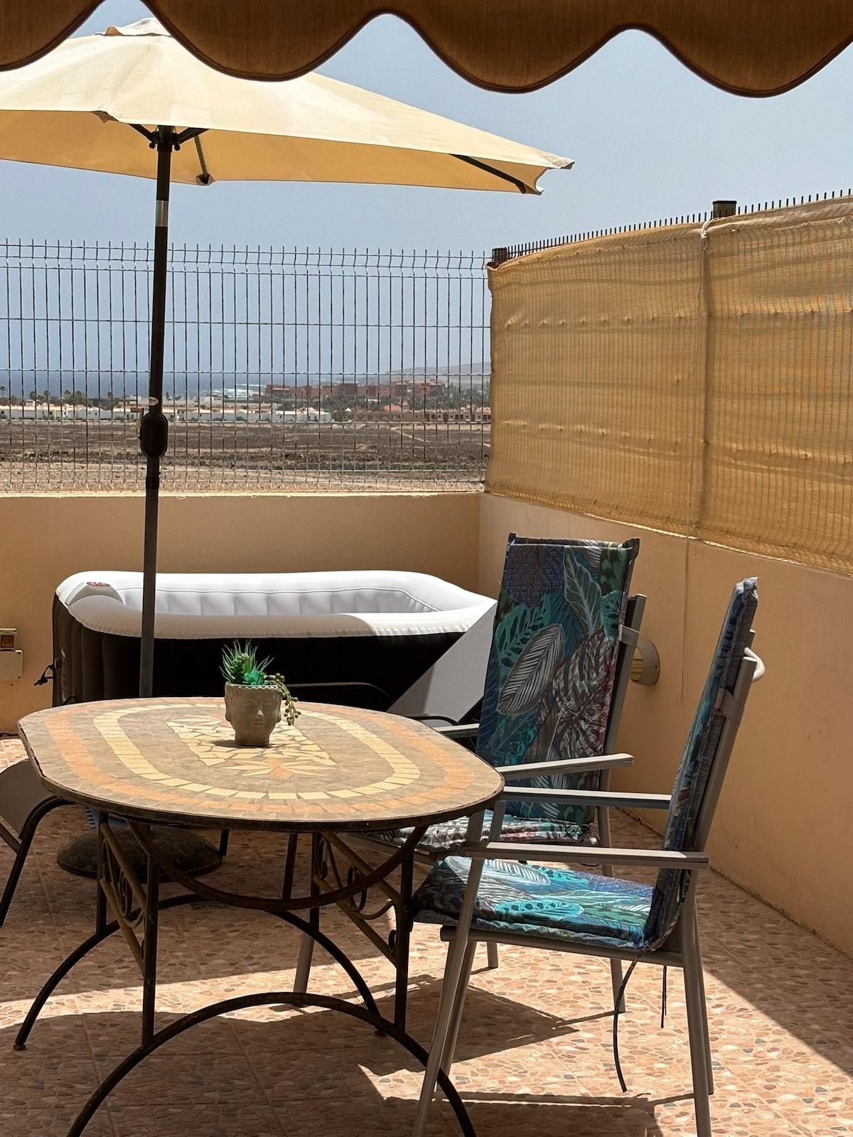 Acogedor apartamento equipado con todo lo necesario para pasar unos días de relax. Aire acondicionado, cama cómoda y aparcamiento privado frente a la puerta de la casa. ¡Gracias a su ubicación estratégica, es ideal para unas vacaciones para descubrir Fuerteventura y sus maravillosas playas! Ubicación tranquila ideal para el «smart working». Zona exterior amueblada y amplia para comer, tomar un aperitivo, tender la ropa o guardar el material deportivo.