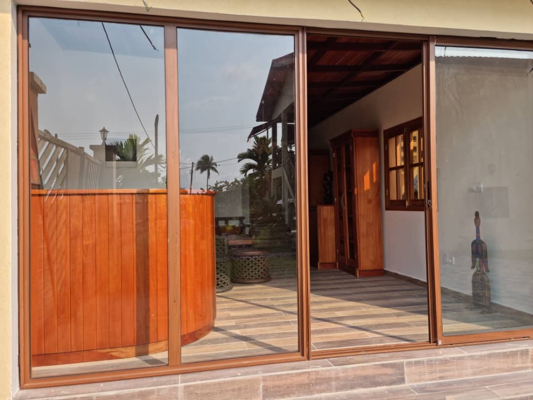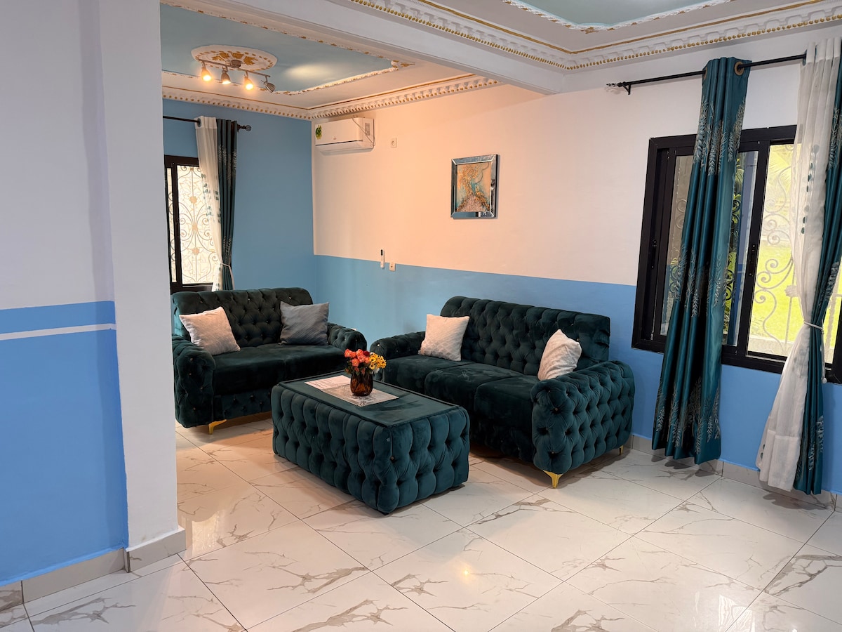 La Résidence Créolia es un remanso de paz y confort situado a 700 metros del mar, a 10 minutos del centro de Kribi, a 15 minutos del campo de golf de Kribi y a 20 minutos de las cataratas del Lobé. Se inauguró en julio de 2024. Este alojamiento de 3 habitaciones y 104 m² cuenta con una terraza panorámica de 31 m² con vistas al jardín, que dispone de una piscina elevada segura. La amplia sala de estar de 40 m2 cuenta con una sala de estar con TV y decodificador y un gran comedor. Cocina independiente moderna totalmente equipada. Cada habitación tiene 1 baño y 1 terraza privada.