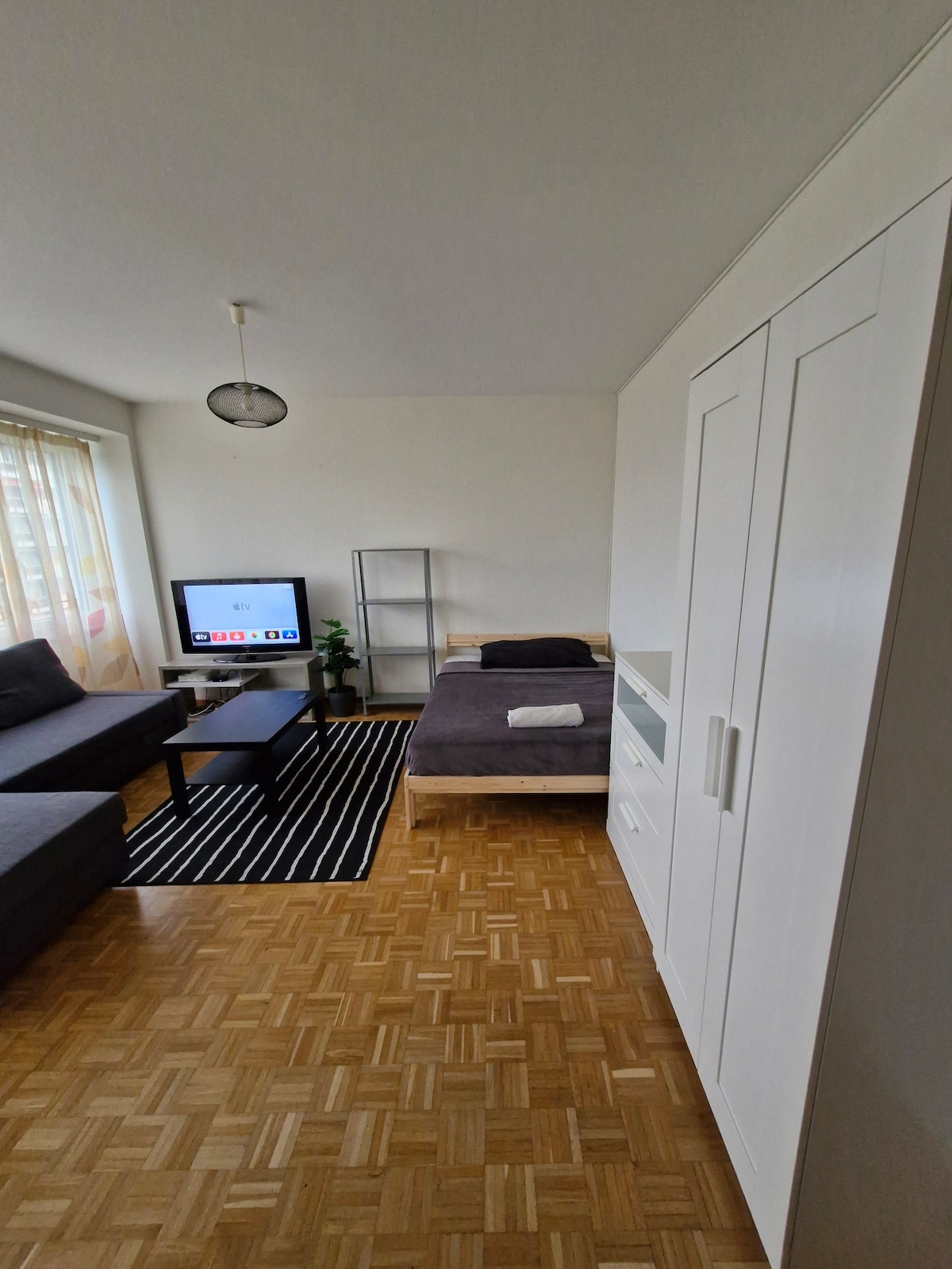Nuestro encantador apartamento, situado a 5 minutos del aeropuerto de Ginebra, está amueblado con un espíritu «hygge». Decorado con muebles de bambú en estilo asiático, ofrece un verdadero cambio de escenario. Disfrute del salón con pantalla gigante o relájese en la terraza equipada con barbacoa y muebles de jardín. El gran dormitorio, con TV y tocador, ha sido diseñado para su comodidad. Nota: el terreno de enfrente está en construcción, sin actividad por la noche o los fines de semana.