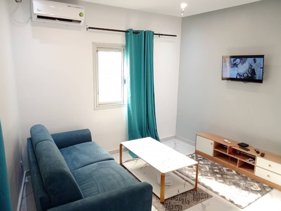 Apartamento en el segundo piso, Residencia Babacar Diop, SIPRES 2, Sud Foire VDN, frente al hipermercado Exclusif. Edificio moderno, ascensor, grupo electrógeno (para las zonas comunes) y conserjería. 2 dormitorios, 3 baños, una sala de estar con muebles modernos, Smart TV de pantalla plana de 50"; wifi de alta velocidad y una cocina bien equipada con lavadora y lavavajillas. Servicio de limpieza 2 veces por semana. Por seguridad, el edificio está bajo videovigilancia en la fachada principal y el vestíbulo.