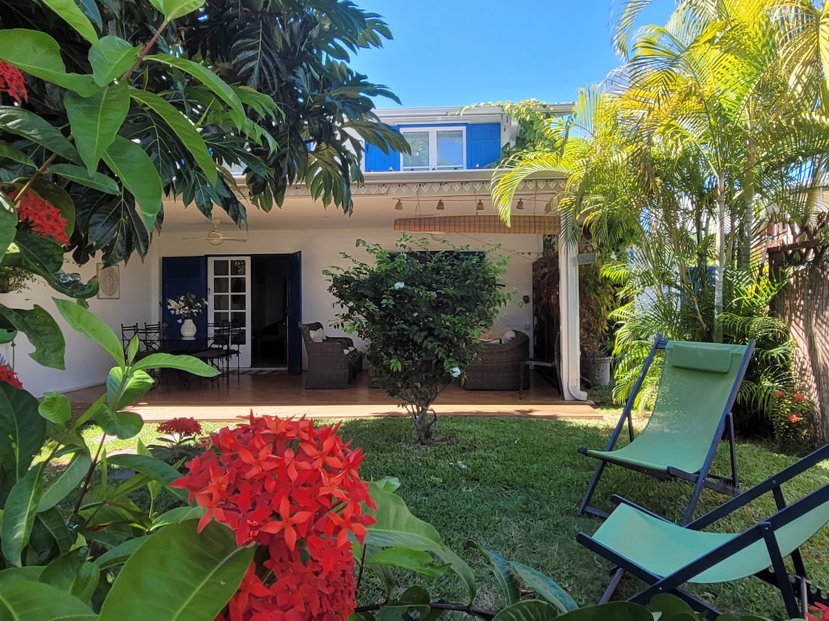 Location à La Réunion LA SALINE-LES-BAINS Maison mitoyenne avec terrasse + 130m2 Charmante maison mitoyenne rénovée récemment â quelques pas du lagon avec piscine à l’eau de sel pour 4 adultes et 2 enfants. Le point fort de la maison est sa proximité du lagon et de tous les commerces du centre ville de la Saline-les-bains (épicerie, bar restaurant, boulangerie, pharmacie, médecin) du lagon et de sa piscine avec système de nage à contre courant et hydro-massant.