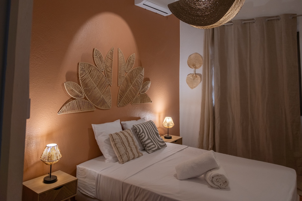 Ce T4 bohème chic est situé à Petite-Terre, dans une résidence sécurisée dédiée à la location saisonnière. Entièrement décoré par un architecte, il offre un salon spacieux avec canapé XXL, un patio privé, trois chambres thématiques (Azur, Sauge, Terracotta) et un coin bureau idéal pour le télétravail. Géré par la conciergerie Nawassi, le logement garantit confort, sérénité et un accompagnement professionnel tout au long de votre séjour.