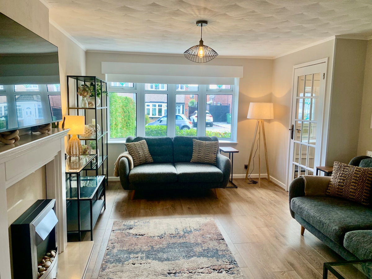 Jardín privado, aparcamiento, patio grande, solarium. Registro las 24 horas. A 1-3 millas de 3 playas diferentes. A 2 millas de West Kirby (lago marino, bares, restaurantes). Golf, ciclismo, senderismo, deportes acuáticos. Distancia en coche A 10 minutos de Liverpool (túnel). 20 minutos Chester 5 minutos Hoylake/playa/golf (Royal Liverpool) 1 min a pie del autobús. Limpio y elegante, viene con lavavajillas, lavadora y utensilios de cocina. Recién remodelado, TV por satélite/Netflix. 2 amplios dormitorios dobles. 1 dormitorio pequeño/sala de estudio.