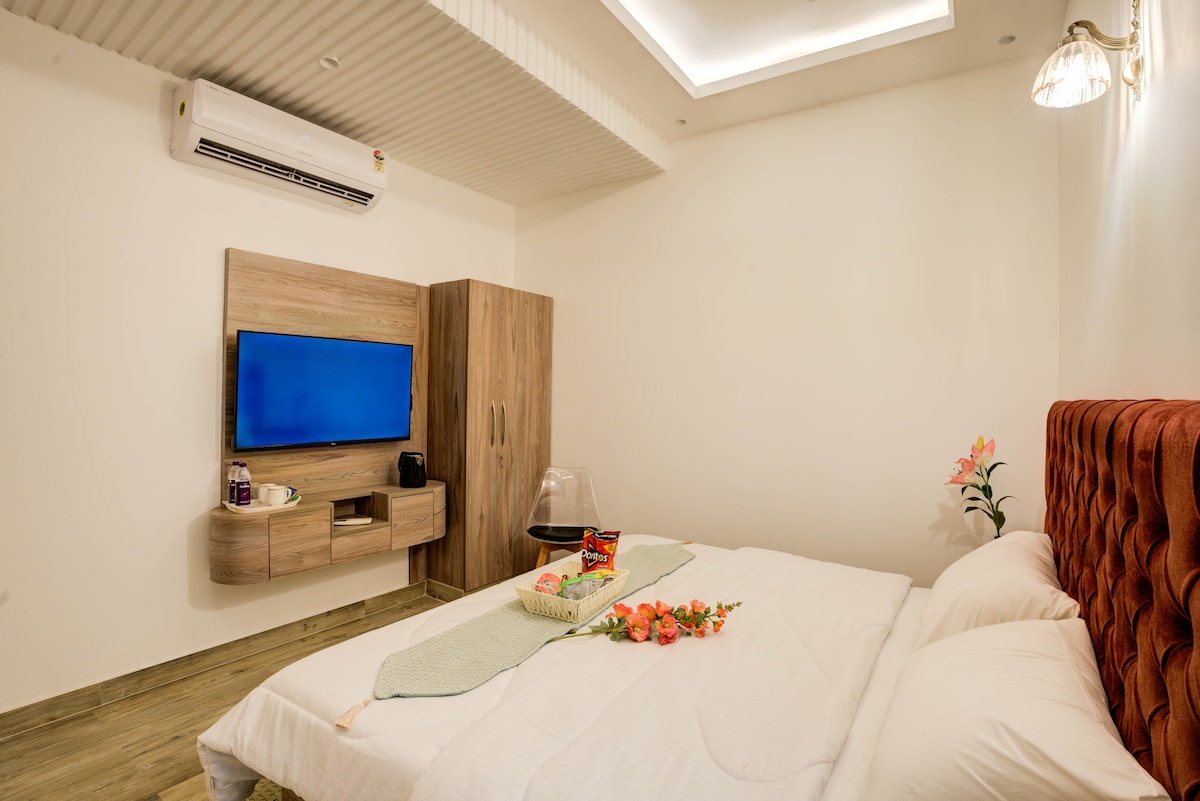 Strategically located in the heart of Gr. Noida, nearby the Expo Mart, Saffron Inn redefines luxury living with its unmatched blend of convenience, comfort and sophistication. It is a boutique Hotel offering Luxury Rooms with all the essential amenities needed for a pleasant stay. This property offers Spacious Rooms, Free Wi-Fi, 24/7 Room Service, Air Conditioning, Safety and Security, free Car Parking and many more amenities. Book now for an unforgettable stay!