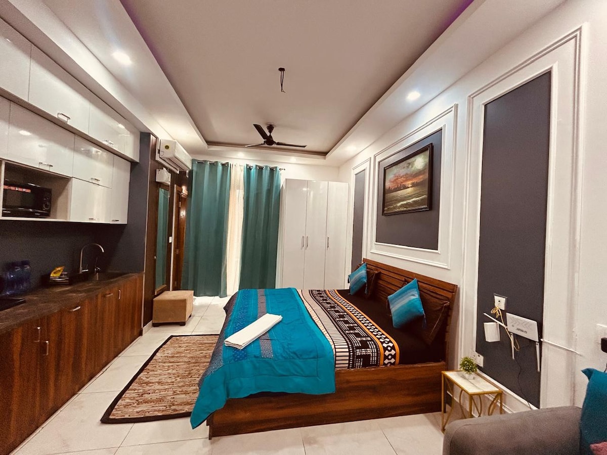 «Escápate a tu elegante santuario en el corazón de Greater Noida». Este elegante apartamento tipo estudio es el refugio perfecto para aventureros solitarios, parejas o viajeros de negocios que buscan comodidad y conveniencia. El espacio: El apartamento cuenta con una cómoda cama tamaño king con sábanas de felpa, una acogedora zona de estar y un espacio de trabajo dedicado. La moderna cocina está equipada con todo lo esencial. Acceso del huésped: Tendrás acceso exclusivo a todo el apartamento estudio. La llegada autónoma está disponible.
