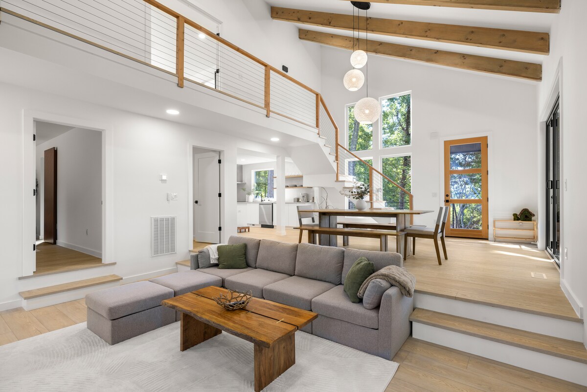 Bienvenido a Mountain Modern Base Camp, donde podrás disfrutar de la soledad de la naturaleza mientras estás a poca distancia en coche de actividades ilimitadas. La propiedad privada de más de 7 acres ofrece una chimenea al aire libre, cancha completa de pickleball y baloncesto, arroyo para disfrutar (con una pequeña cascada), chimenea con vistas a la Techo de 30' con grandes ventanales en las principales salas de estar y loft. La cocina, las salas de estar, el loft, los patios y los bosques están perfectamente preparados para que todos tengan su propio espacio o estén juntos durante su estancia.